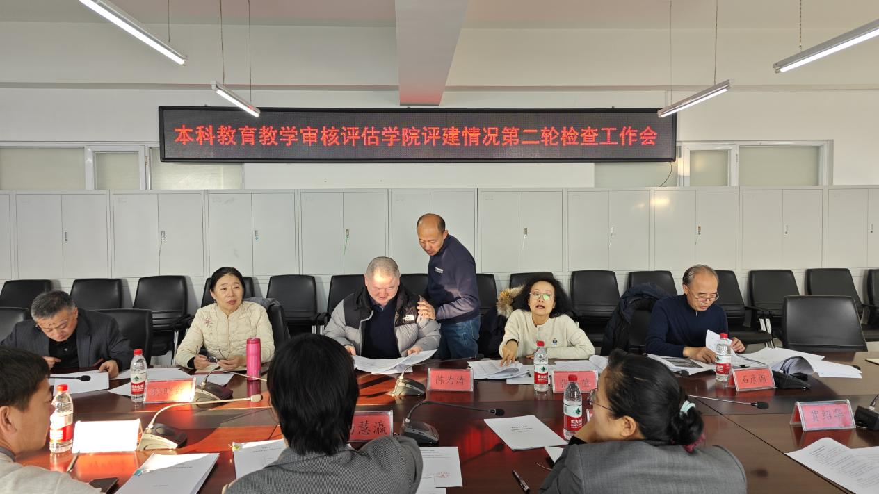 姚凤阁院长介绍了学院开展的自评相关工作。温红梅副院长详细汇报了第一次检查后学院的各项整改工作及整改措施的落实情况。学院在学科专业发展规划、人才培养方案、课程设置与教学大纲、实验室与实习基地建设、毕业论文选题与质量保障、教材选用与审核、教师队伍建设等方面进行了相关整改。
